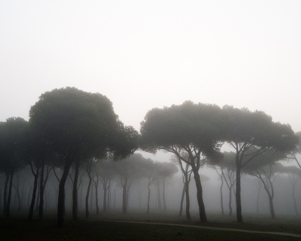"Tras las cortinas de niebla (abullonadas, nítidas, frondosas) se esconde un mundo con luz propia. Quien observa la niebla, se adentra en el más frondoso laberinto de los sentidos. Y quien se deja vislumbrar tras ella se apacigua, se serena, se deja llevar por la fuerza de la naturaleza, y hasta pudiera desbocarse y confundirse con una yegua blanca, un perro solitario, una oveja o esa vaca triste entre las brumas. Se corre la cortina de niebla y comienza el juego visual. Las luces apagadas, el último brillo como el último canto de un gallo en la espesura. El otoño se revuelve con la pura primavera. Las carreteras cercenan los viejos caminos. Sus flechas indican que hay un mañana quizá no tan interesante como ése que se alza bordeando los montes. A pie de cerro, la manada de caballos susurra al prado. En las alturas, una manada de nubes cae abrazando a las nieblas, oscureciendo lo nítido, creando sus propias barreras.Tras la niebla, o rodeado de ella, la lente que todo quiere verlo".