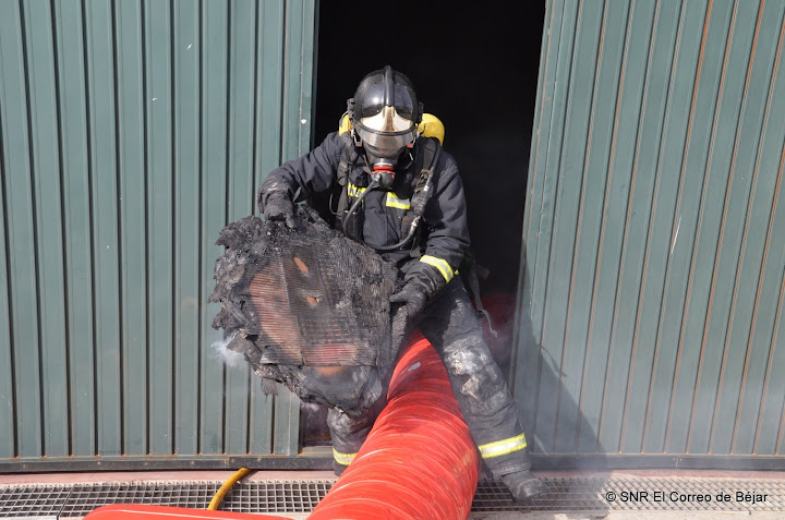 Un vehículo resultó calcinado en la tarde de hoy miércoles en el interior de una nave del polígono industrial de Béjar. Los bomberos consiguieron apagarlo en pocos minutos debido a la localización del fuego. La dificultad sólo fue debida al humo tóxico despedido, que llenó la totalidad de la nave, un taller mecánico de chapa y pintura.